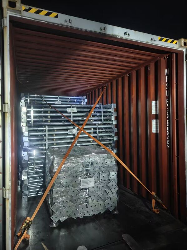 Carregamento de contêiner completo de postes de escoramento de metal para serviço pesado, macacos de construção ajustáveis em comprimento, constroem andaimes